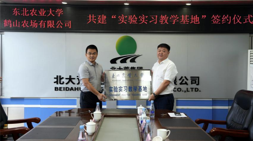 实践活动首站聚焦人才培养与科研合作,于鹤山农场有限公司会议室举行座谈会及授牌签约仪式。会议由陈震总经理主持,双方围绕“协同育人,合作共赢”理念展开深入交流,明确将结合高校科技与人才优势和农场实践平台,主攻现代化大农业,提升人才培养与产业需求的契合度。为此,双方提出“四共”“四通”工作机制,旨在搭建定制化培养平台,促进校企深度交流。座谈会后,双方共同签署了“实验实习教学基地”共建协议,并举行了授牌仪式,标志着合作迈向新台阶。